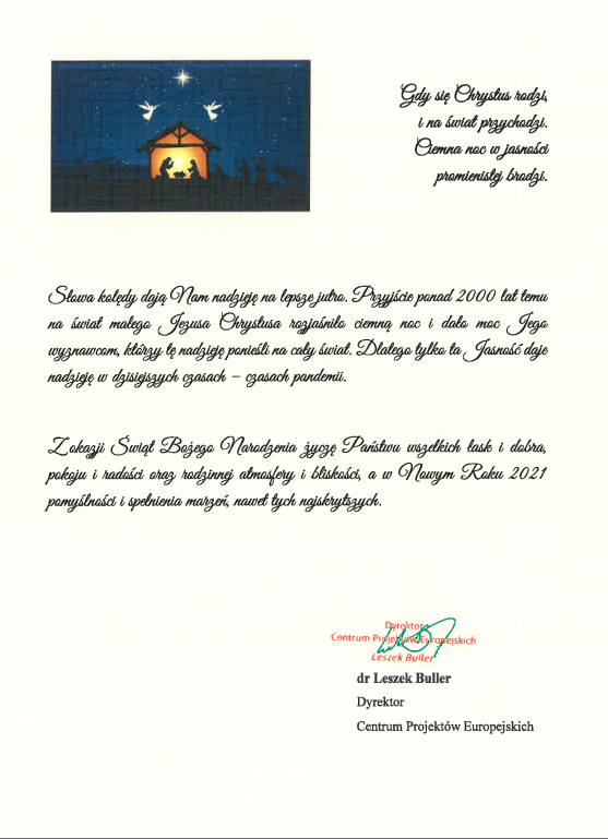 Życzenia z okazji nadchodzących Świąt